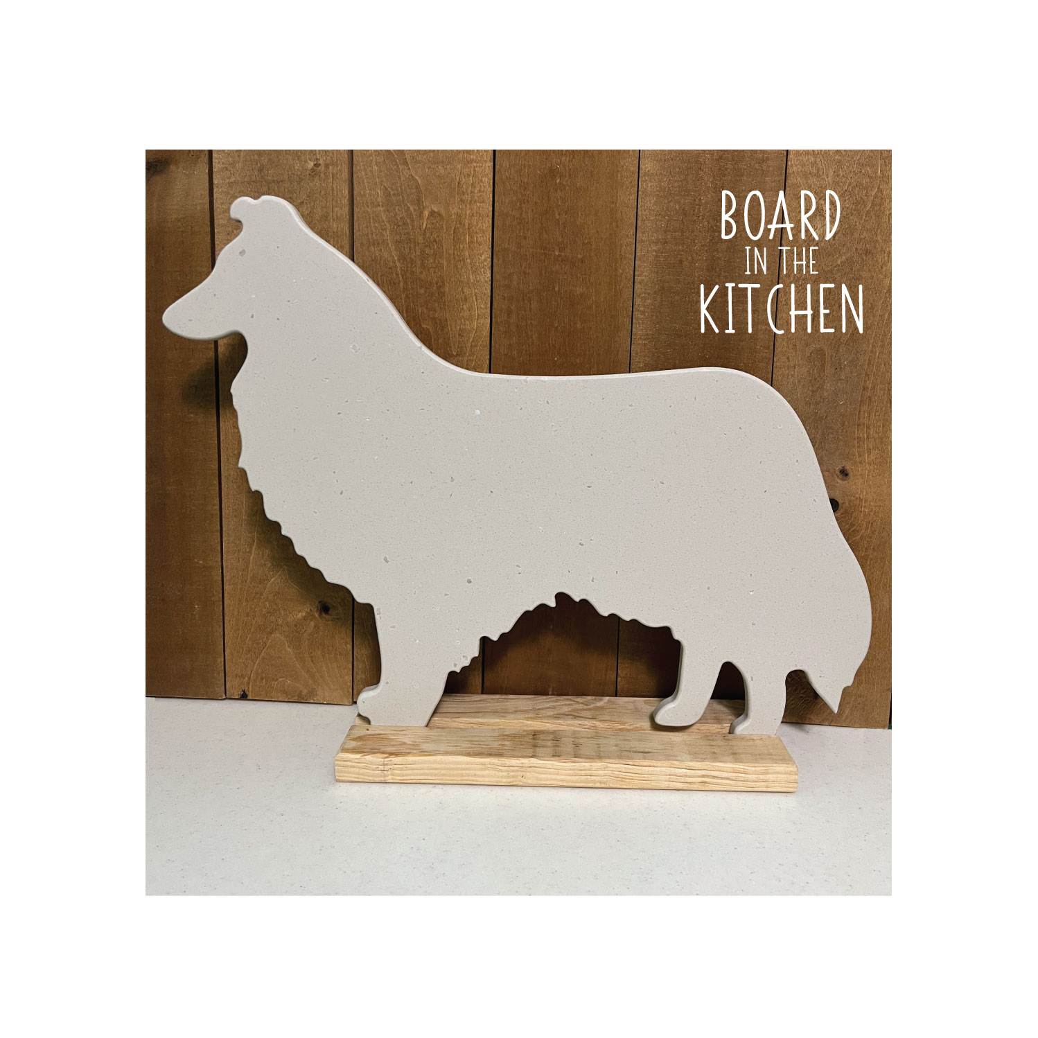 This COLLIE Custom Cutting Board that comes with a stand is a great decoration in the kitchen as well as a safe, usable cutting surface and serving tray. Wow guests with this Dog Breed Cutting Board. Dog lovers will surely appreciate slicing up an appetizer tray on the board then presenting to guests and watch the compliments roll in! Makes a great Wheaton Terrier gift for a Wheaton Terrier owner you know.